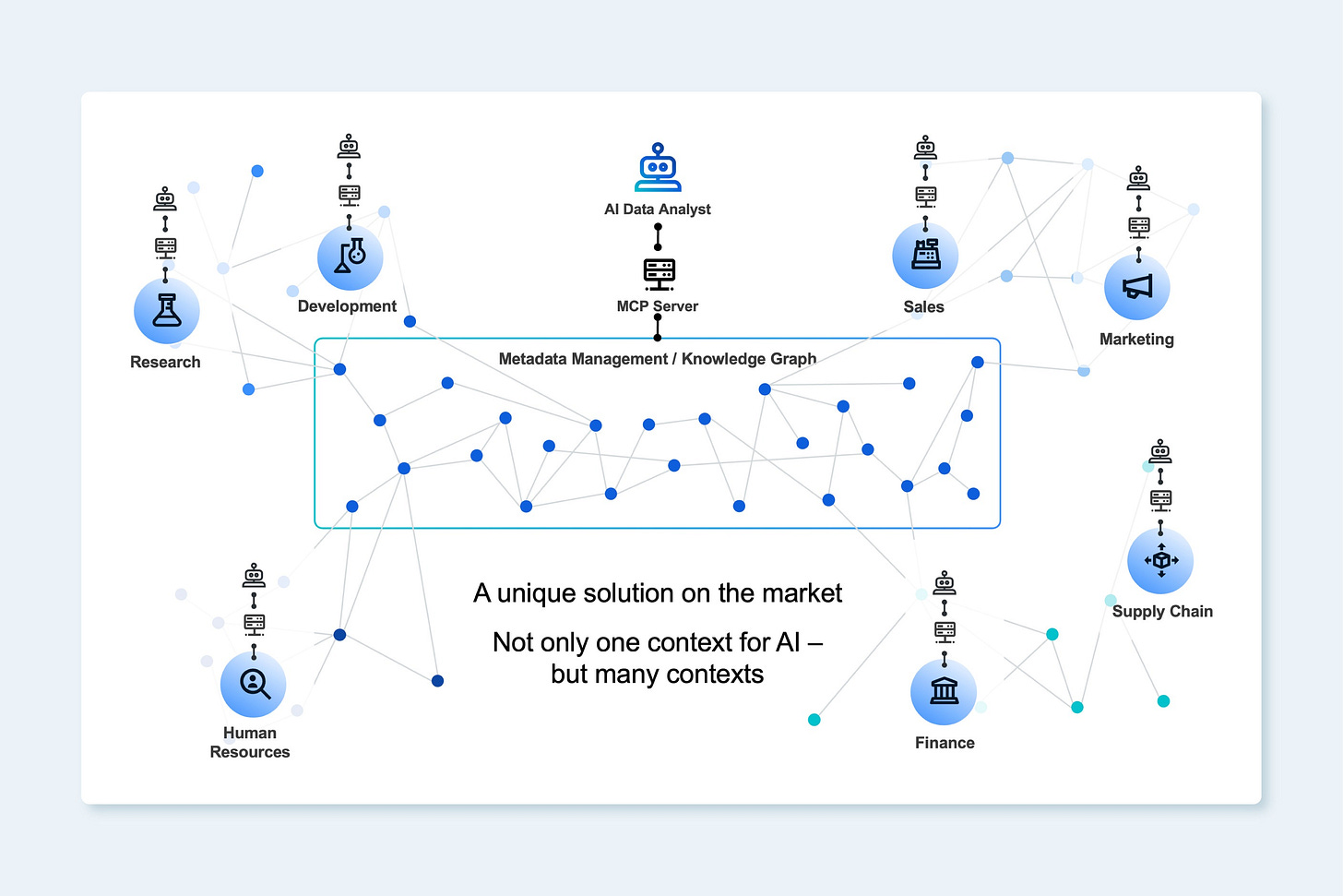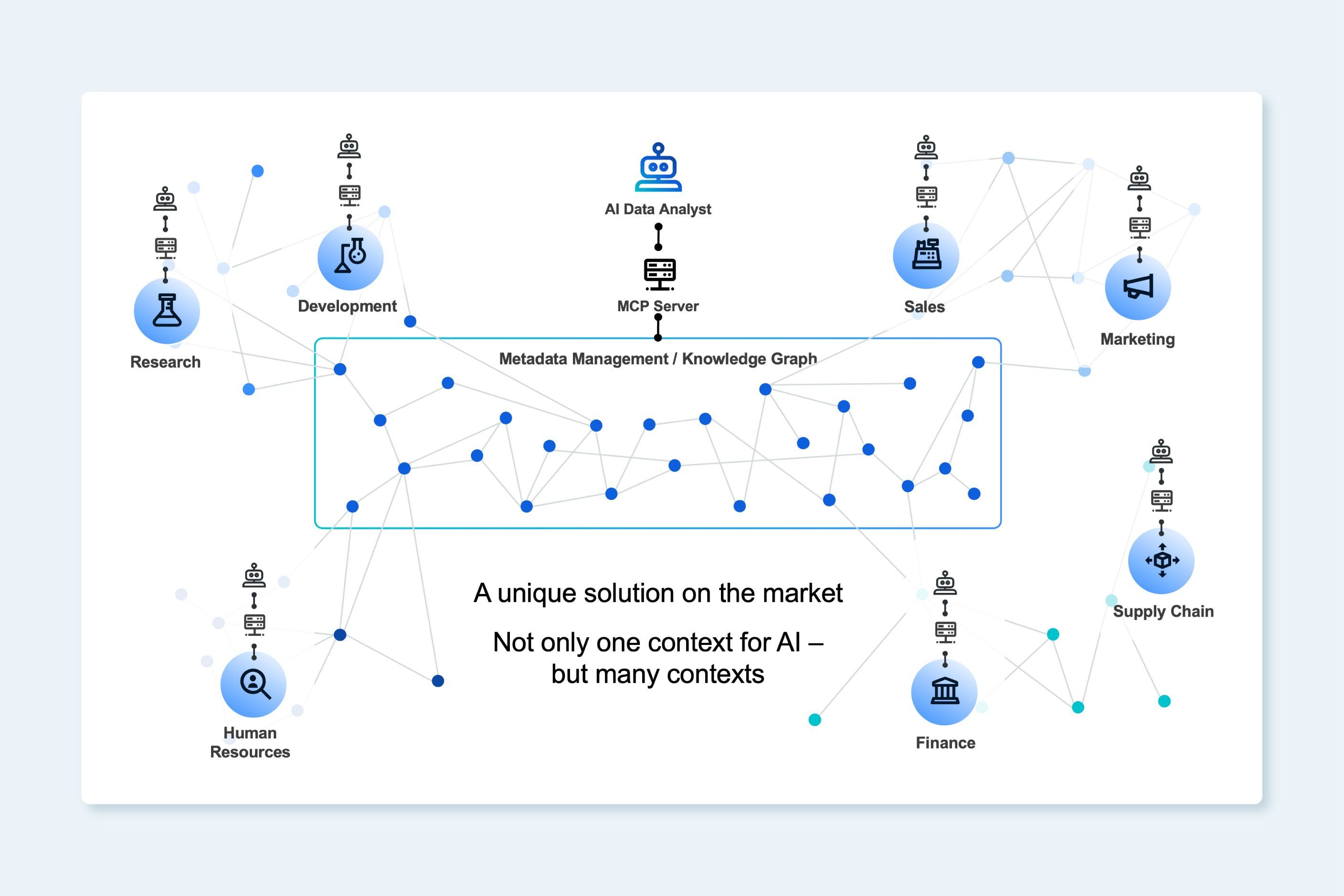 AI Data analysts are powered by large language models – LLMs. LLMs will increase precision when they are supported by context captured in knowledge graphs. Knowledge graphs solidify the translation of business questions asked in natural language into powerful structured statements for AI Data Analysts that query data and back again to natural language, thanks to the context they contain. And to obtain that context in a way that is fast and predictable, a new standardized approach is gaining momentum: Model Context Protocol (MCP). MCP is an agreed upon standard, that structures and stores data for AI applications.