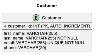 Only five fields can define a customer: an identifier, a first and last name, an email, and a phone number.